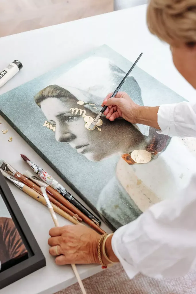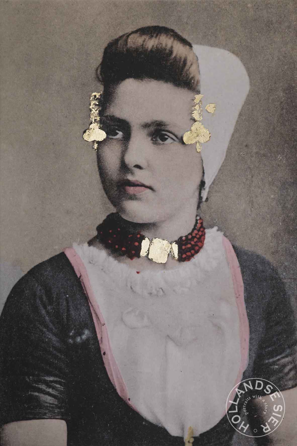 De portretten van Hollandse Sier vertellen ook een verhaal. De met de hand ingekleurde portretten van de vrouwen zijn van ongeëvenaarde schoonheid. Ze hebben een dromerige uitstraling. De unieke signatuur van Hollandse Sier ligt in het toevoegen van gouden accenten. “De kers op de taart,” de gouden details, brengen de portretten tot leven in elk licht. Ze zullen een adembenemend gezicht zijn in ieder interieur.