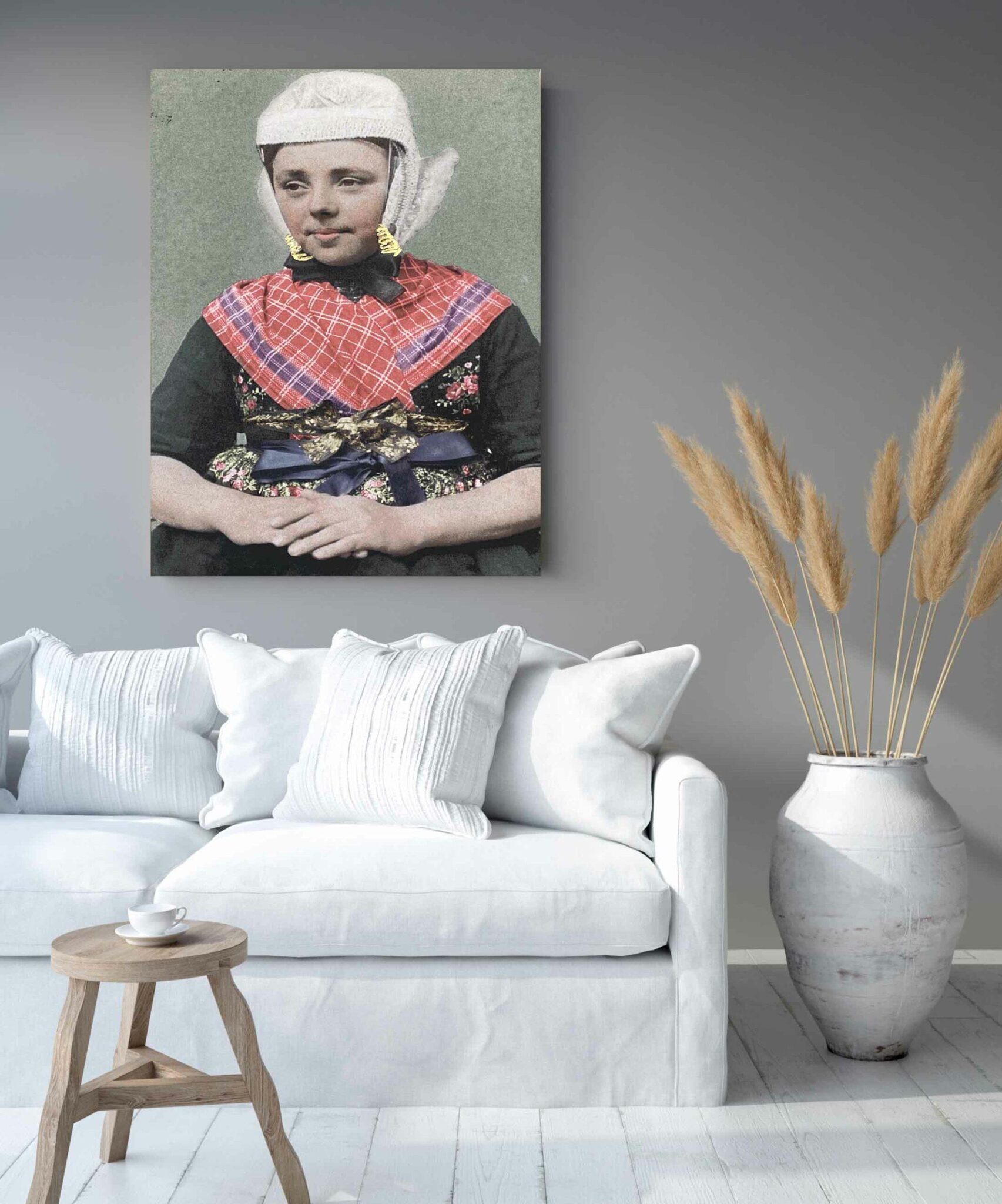 Onze kunstwerken zijn gebaseerd op historische foto's van mensen in klederdracht uit Nederland en andere landen. We brengen de schoonheid van vroeger in moderne interieurs.
