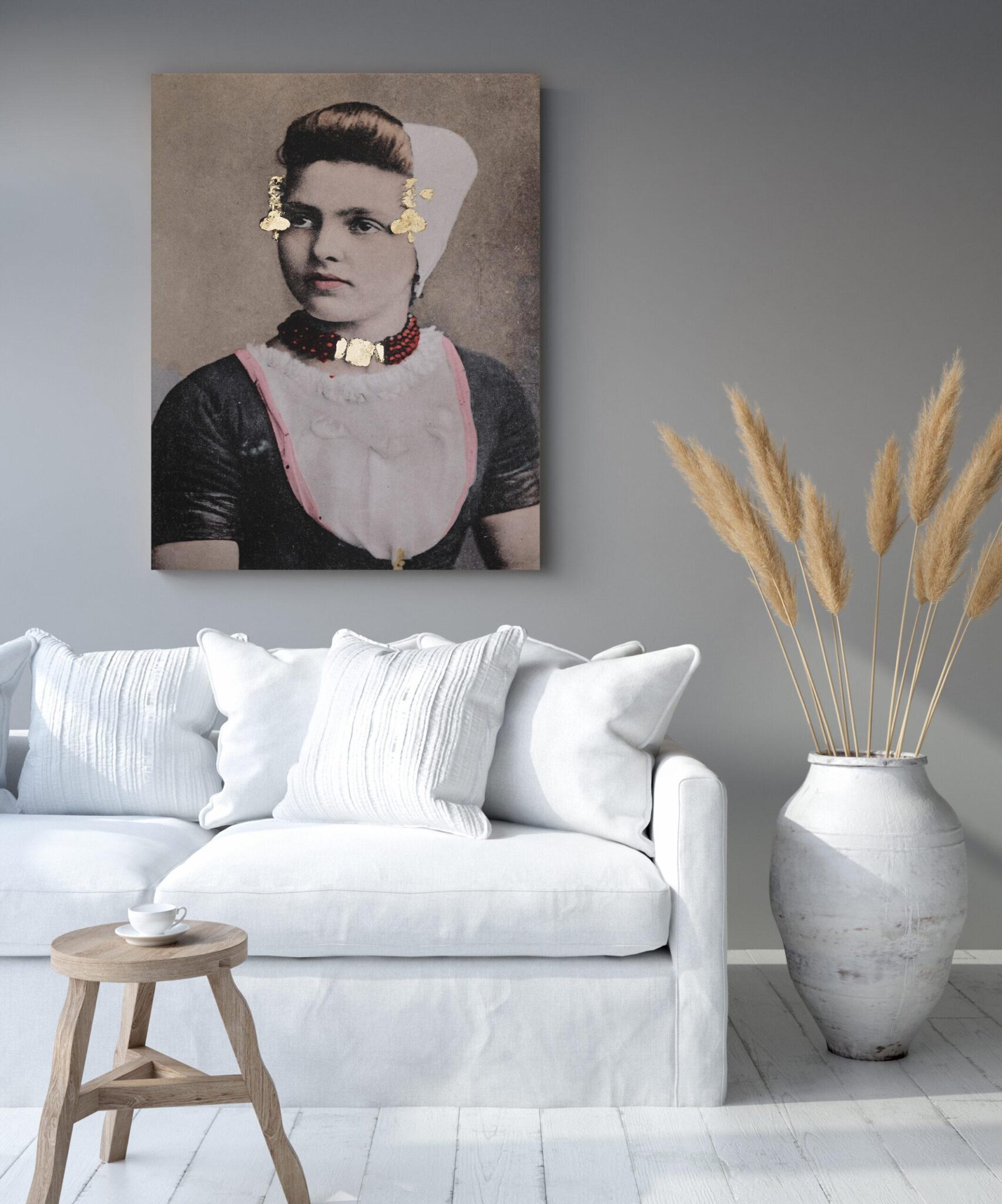 Onze kunstwerken zijn gebaseerd op historische foto's van mensen in klederdracht uit Nederland en andere landen. We brengen de schoonheid van vroeger in moderne interieurs.