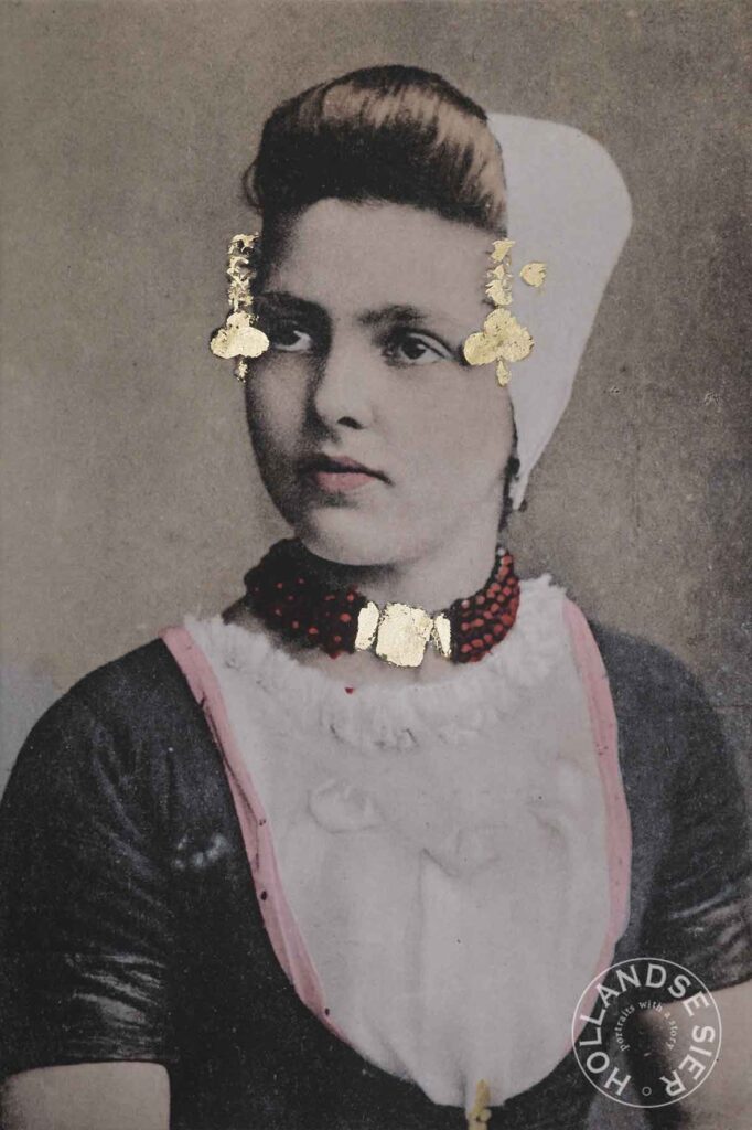Stuur ons een foto van een familielid in klederdracht (1900–1940), en wij maken er een gouden portret van—persoonlijk, stijlvol en helemaal uniek.