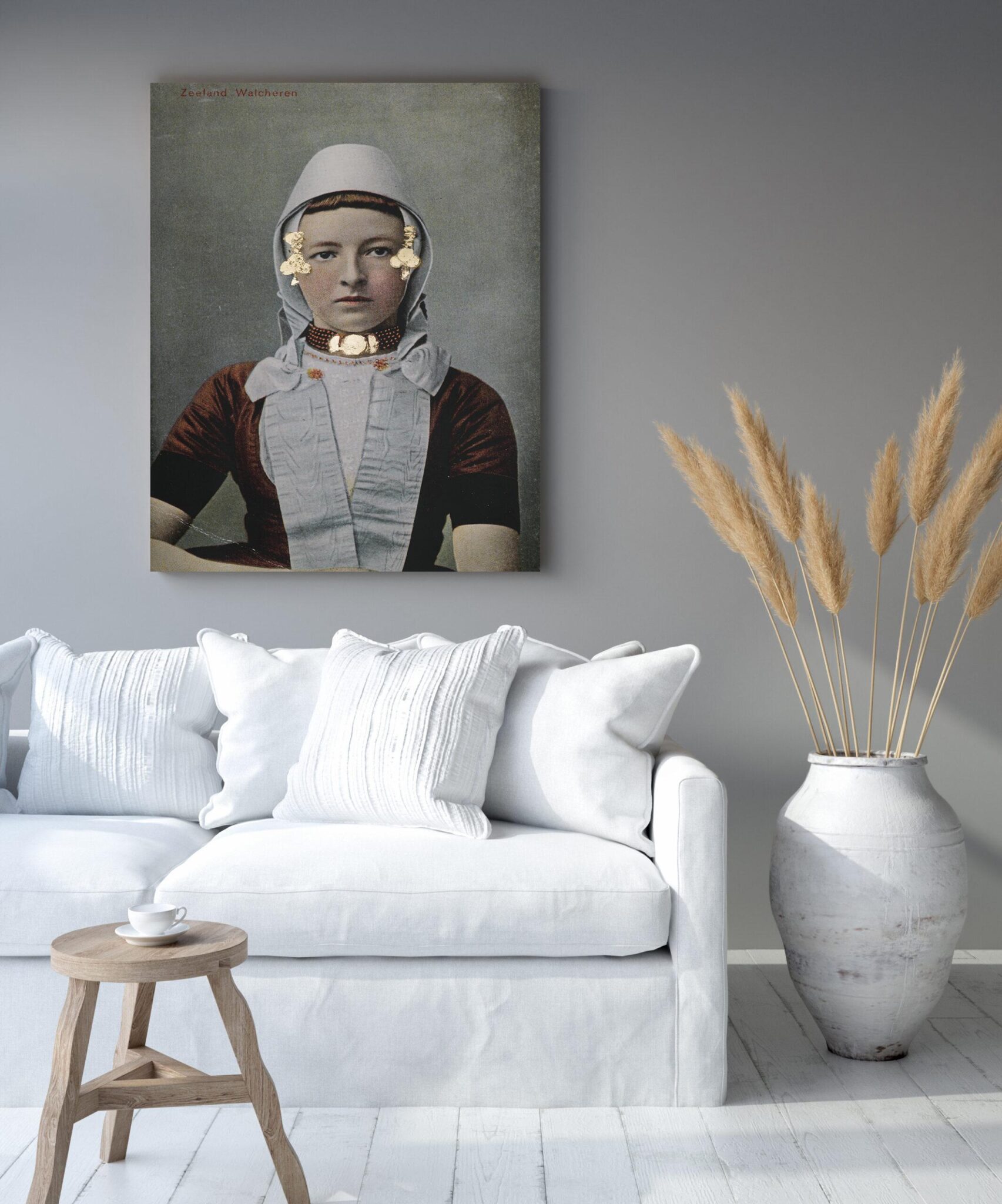 Onze kunstwerken zijn gebaseerd op historische foto's van mensen in klederdracht uit Nederland en andere landen. We brengen de schoonheid van vroeger in moderne interieurs.
