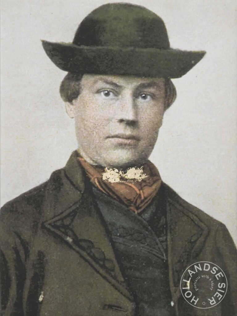 Stuur ons een foto van een familielid in klederdracht (1900–1940), en wij maken er een gouden portret van—persoonlijk, stijlvol en helemaal uniek.